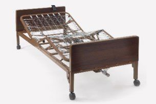 The Semi-Electric Bed is a lightweight bed known for its value and quality. It uses a traditional hand crank for height adjustments and a heavy-duty remote to raise and lower the upper body and knee sections. The DC motor box snaps off, making delivery, setup, and routine maintenance easy for the user or caregiver.